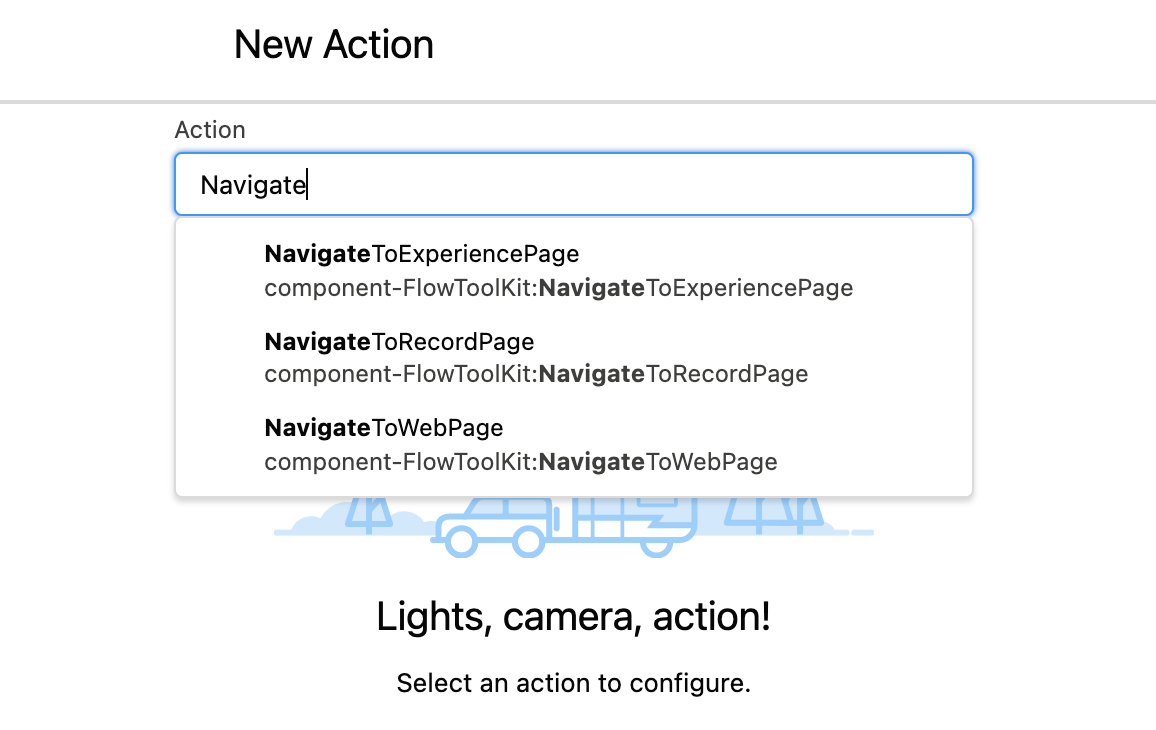 The Flow Tool Kit package contains multiple action elements that can be used to navigate bewteen web pages. The pacakge also includes actions that allow admins to display custom alerts and modals to form Users.