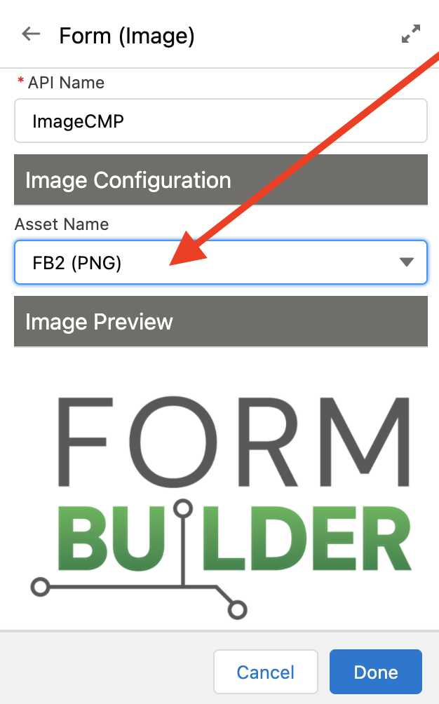 Note: only images with a file type (PNG, JPG, JPEG, SVG) are valid for form images.